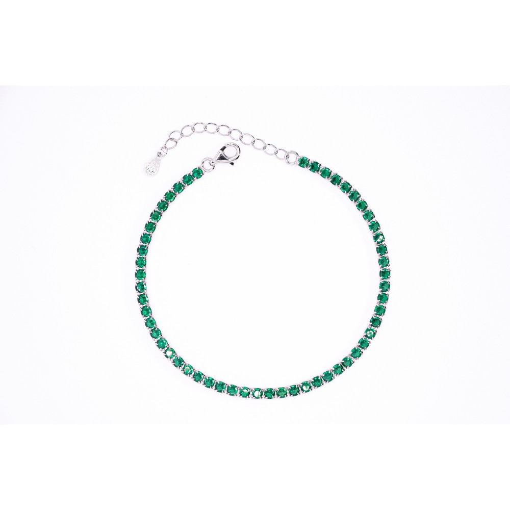 Γυναικείο βραχιόλι ριβιέρα από ασήμι 925 με εντυπωσιακές πράσινες πέτρες ζιργκόν.