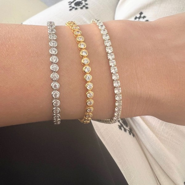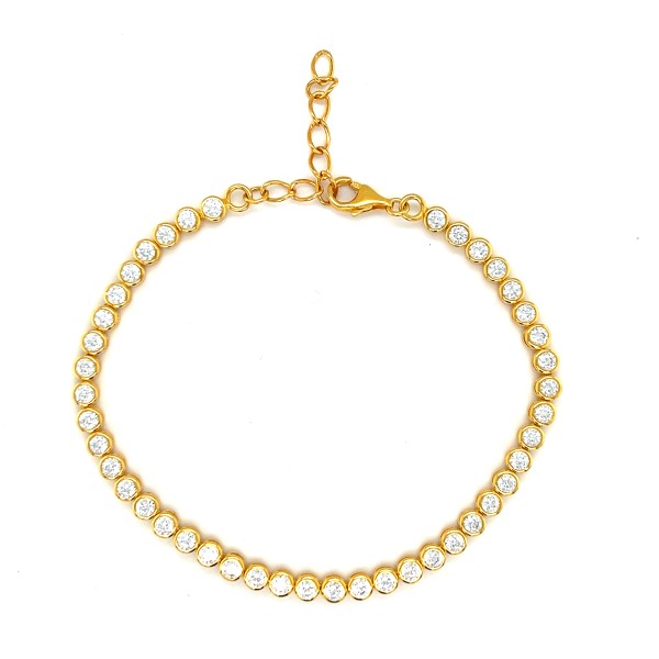 Γυναικείο βραχιόλι ριβιέρα από επιχρυσωμένο ασήμι 925 με εντυπωσιακές πέτρες ζιργκόν.