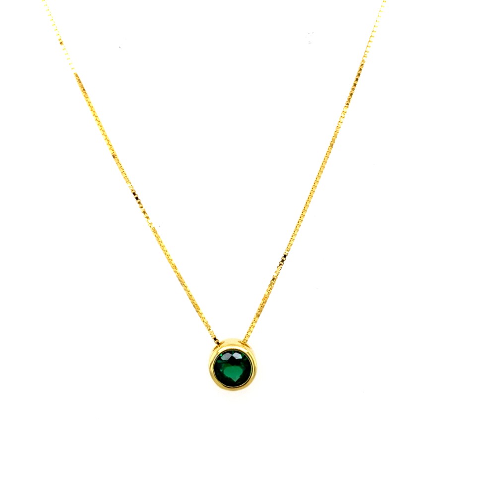 Κολιέ, μονόπετρο πράσινο ζιργκόν,από επιχρυσωμένο ασήμι 925
