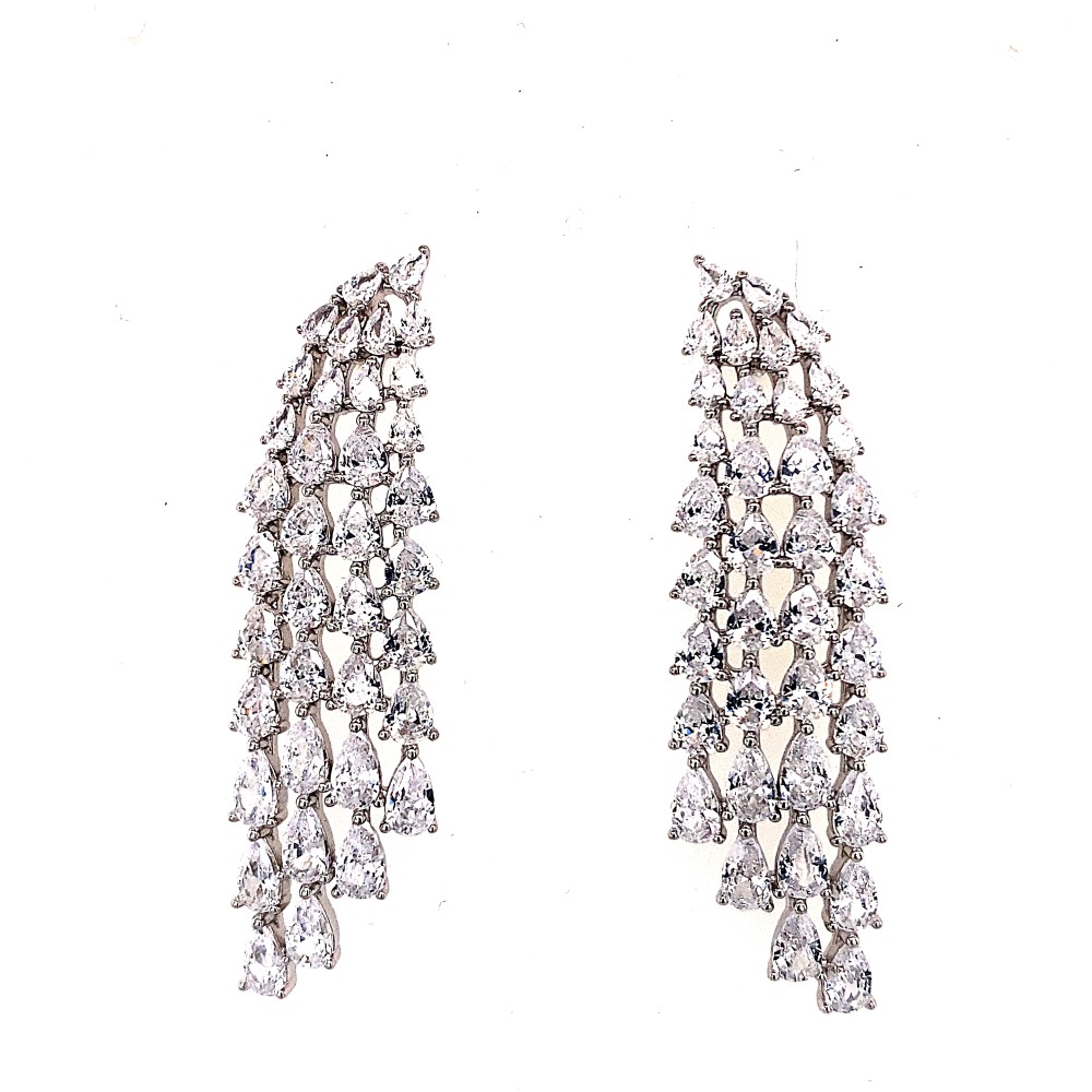 Ασημένιο 925 σκουλαρίκι με πέτρες ζιργκόν με λεπτοκαμωμένο φινίρισμα.