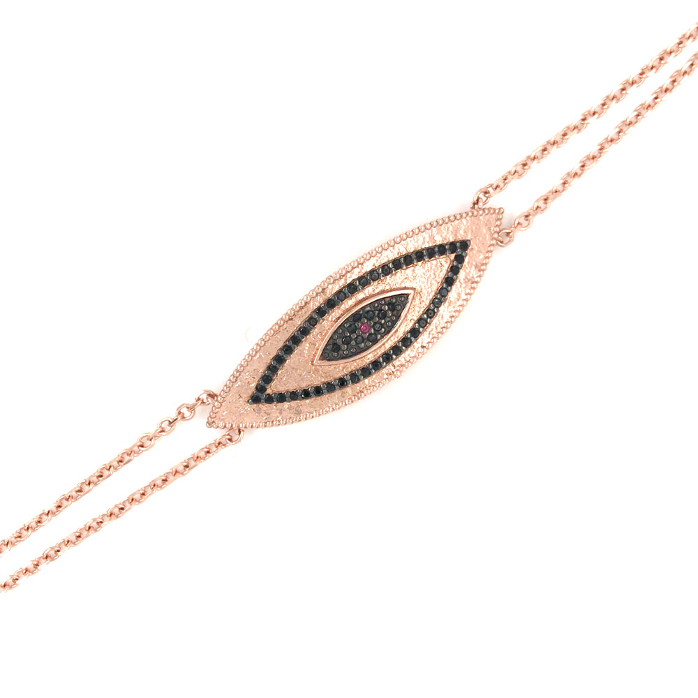 Γυναικείο βραχιόλι από ασήμι 925 σχέδιο μάτι δεμένο με μαύρα ζιργκόν.