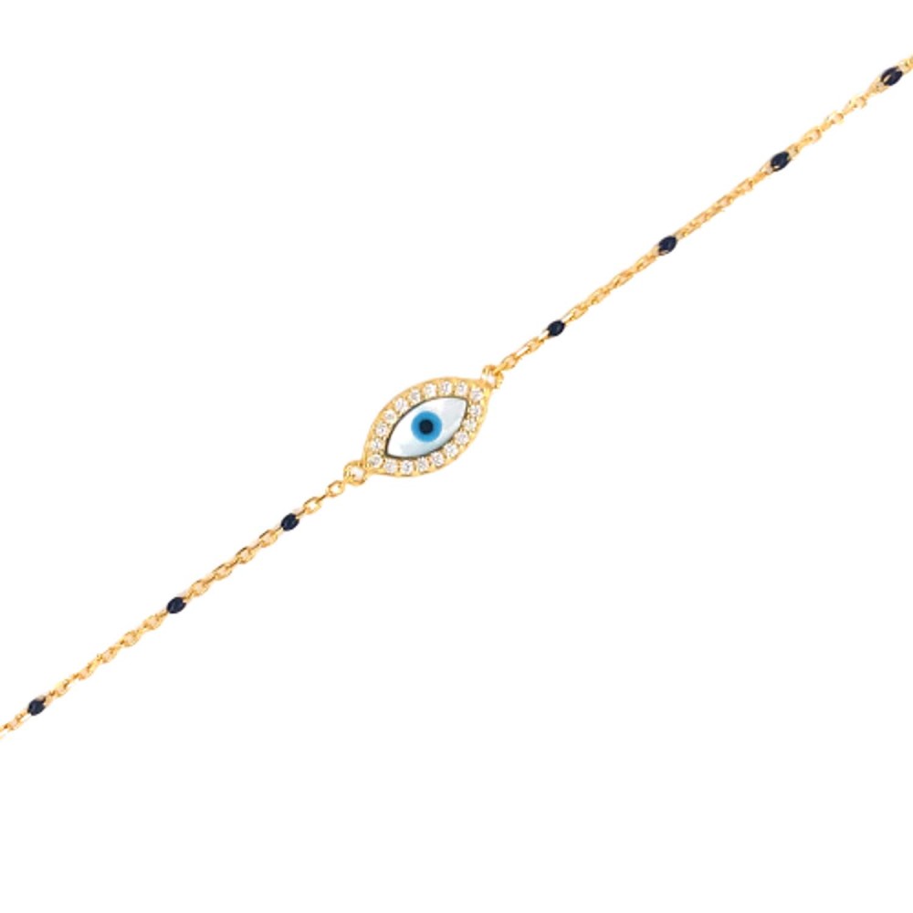 Γυναικείο βραχιόλι από επιχρυσωμένο ασήμι 925, ματάκι με λευκά ζιργκόν.