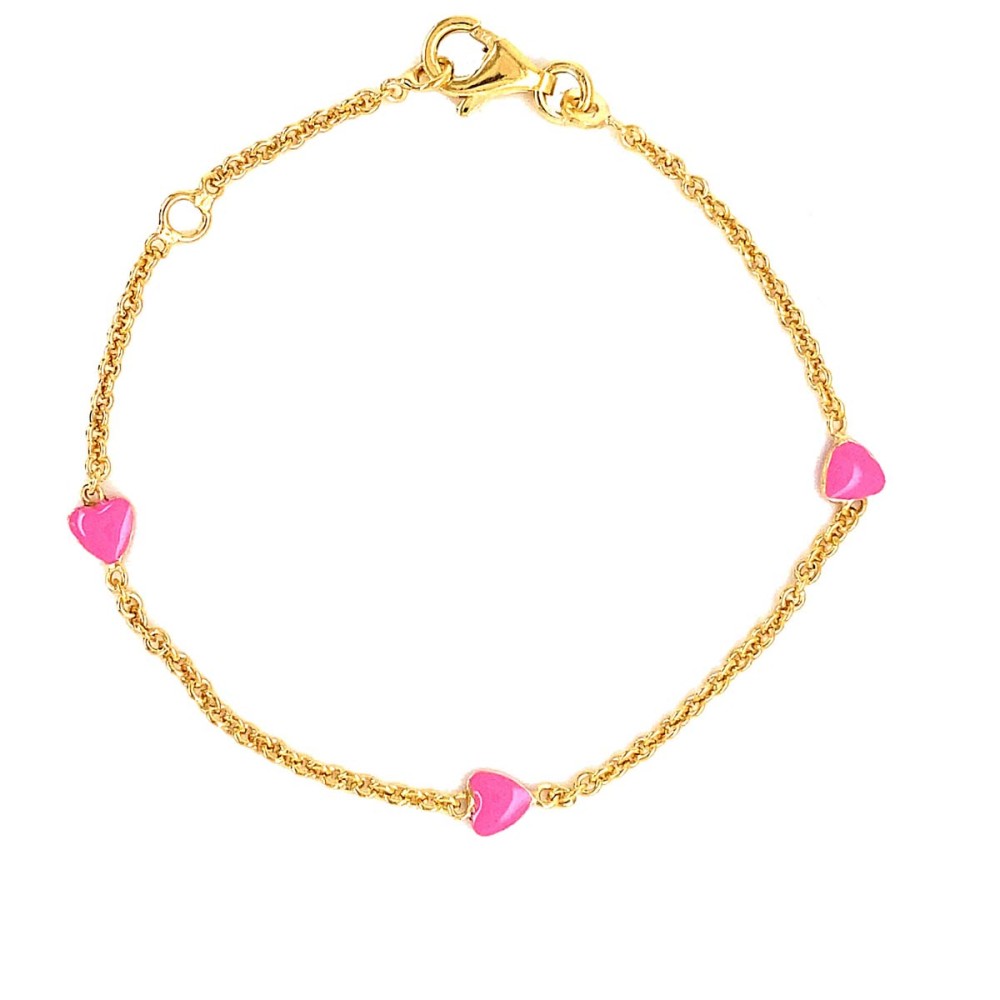 Βραχιόλι παιδικό για κορίτσι από επιχρυσωμένο ασήμι 925 με ροζ καρδούλες.