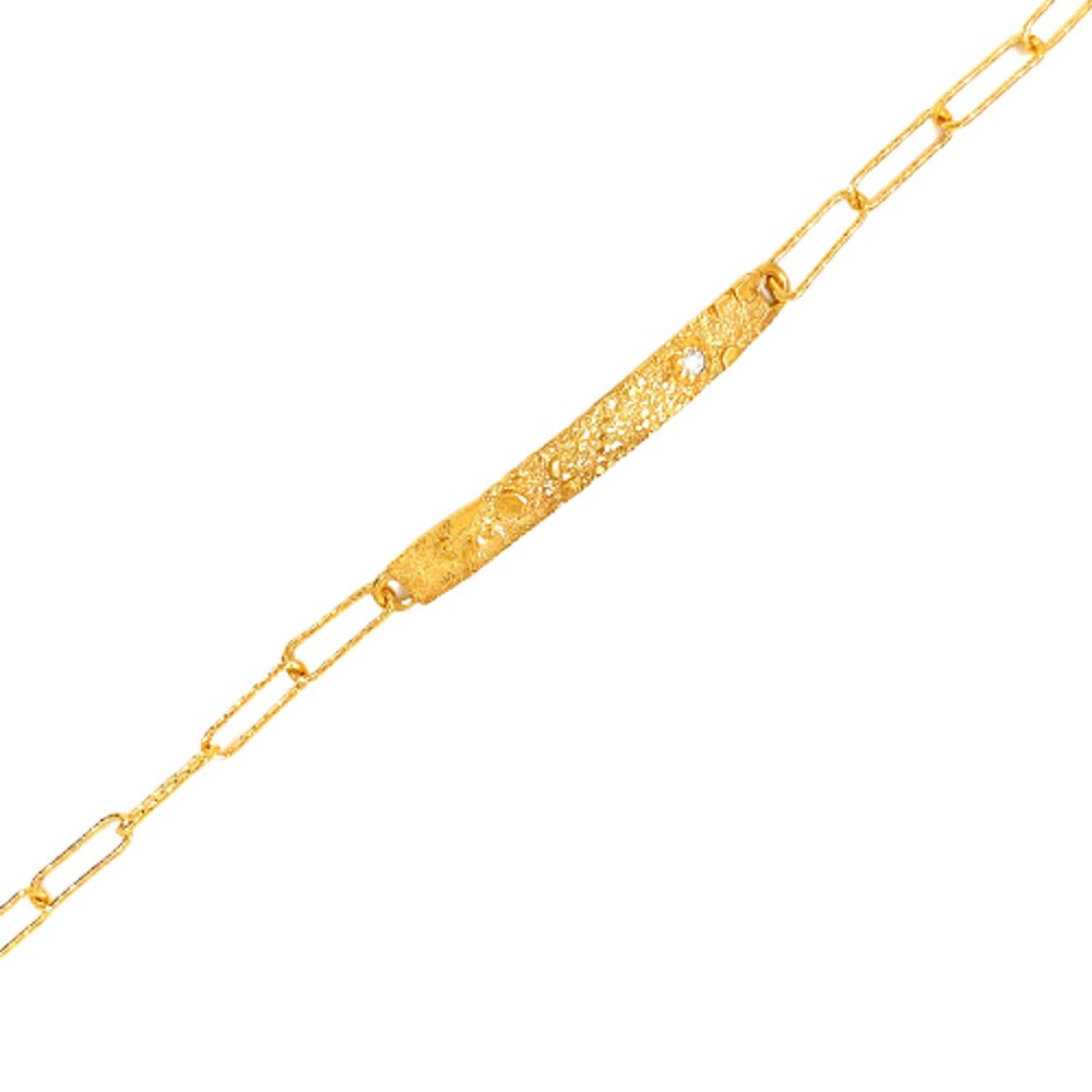 Βραχιόλι χειροποίητο ταυτότητα της εταιρίας Vot από επιχρυσωμένο ασήμι 925 με σφυρήλατη επιφάνεια και λευκό ζιργκόν.