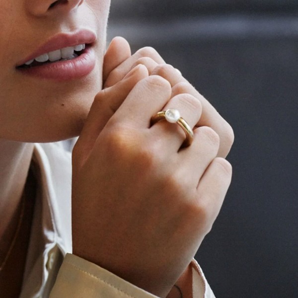 Δαχτυλίδι Edblad της σειράς Modernist από επιχρυσωμένο ανοξείδωτο ατσάλι και λευκή πέρλα.