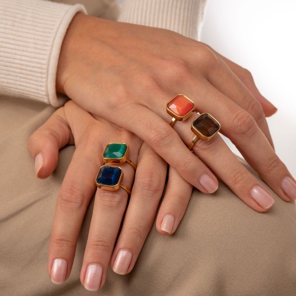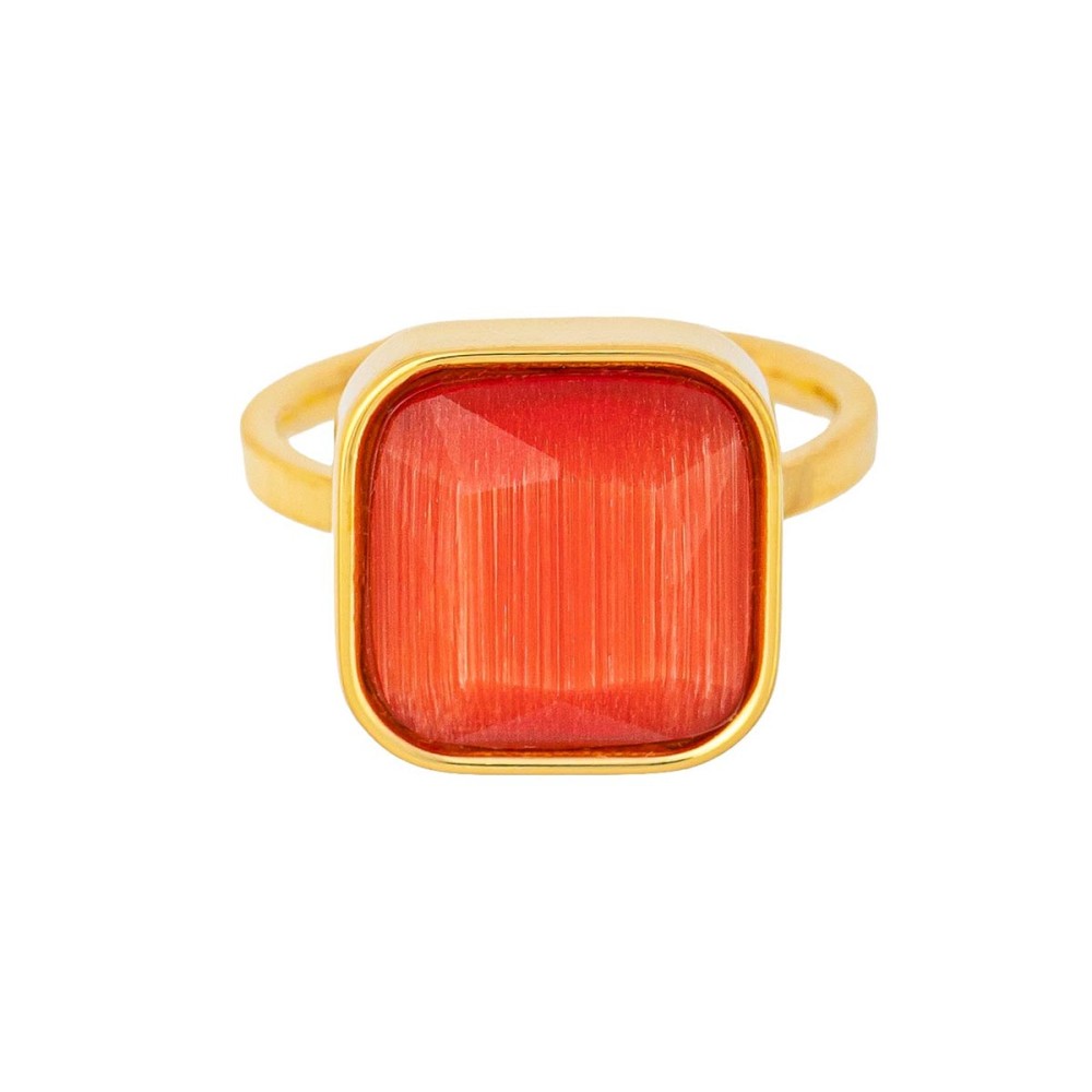 Δαχτυλίδι από επιχρυσωμένο ανοξείδωτο ατσάλι, με πορτοκαλί τετράγωνη πέτρα από κρύσταλλο , της Excite Fashion Jewellery.