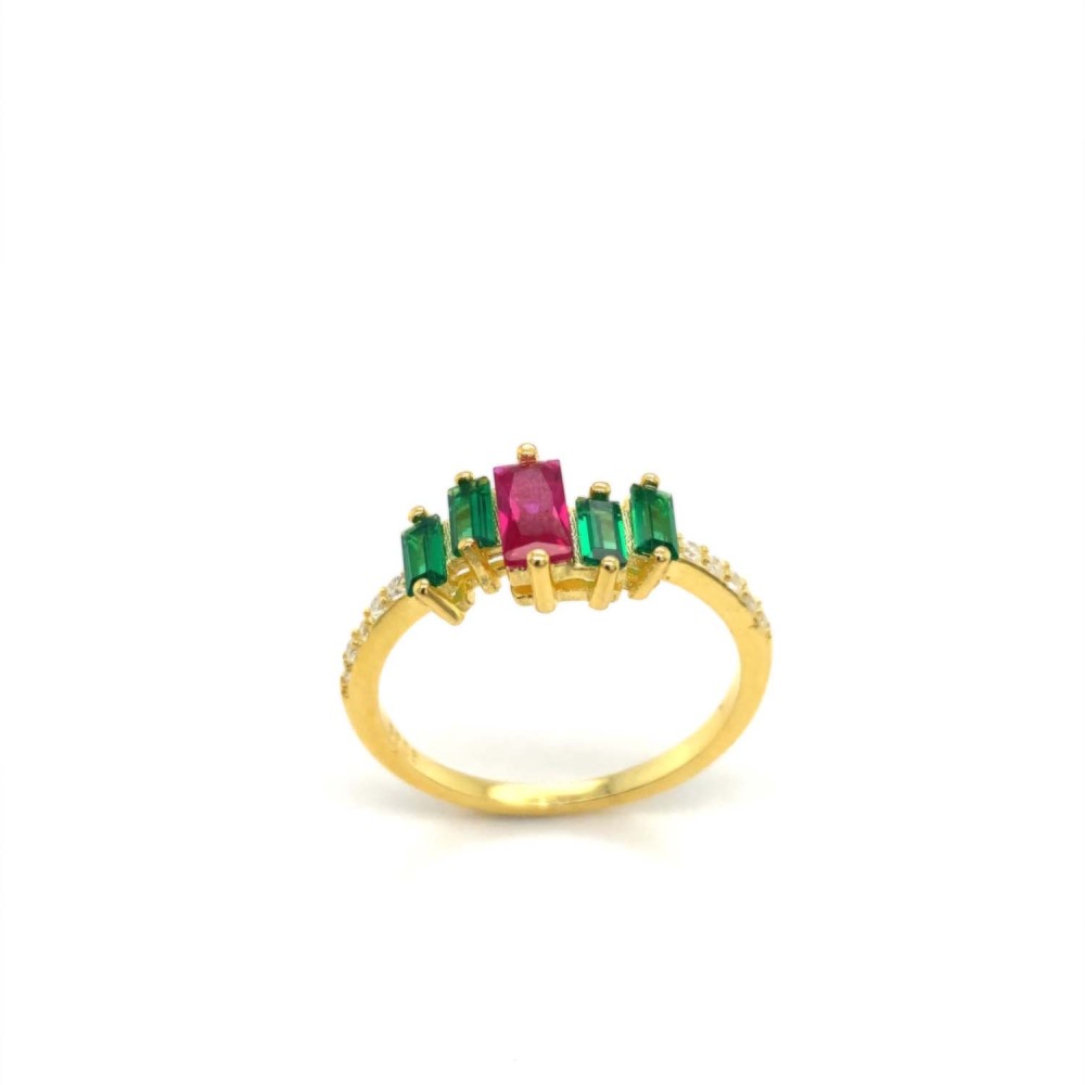 Γυναικείο δαχτυλίδι από επιχρυσωμένο ασήμι 925 με πολύχρωμα ζιργκόν.