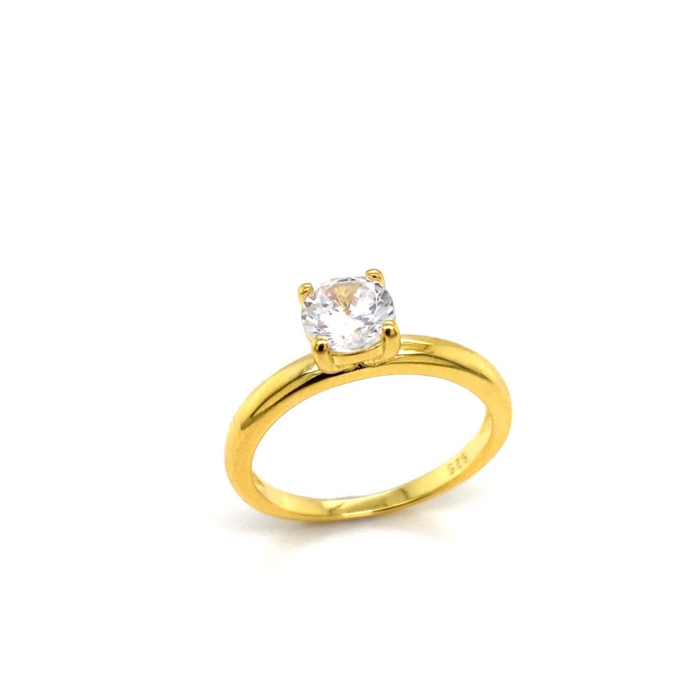 Γυναικείο δαχτυλίδι μονόπετρο από επιχρυσωμένο ασήμι 925 με λευκό ζιργκόν.