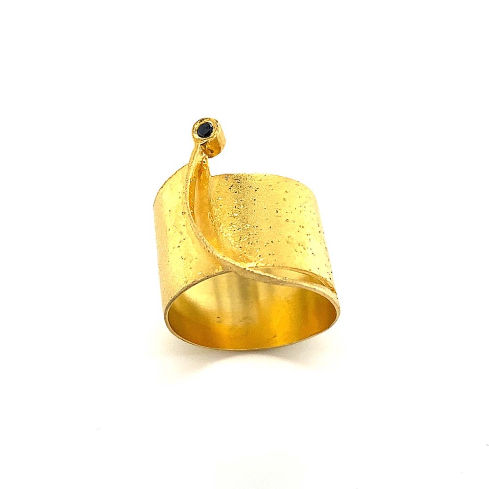 Δαχτυλίδι γυναικείο από ασήμι 925 απιχρισωμένο φαρδιά γάμπα σχέδιο καμπύλη με μαύρο ζιργκόν στο τελείωμα.