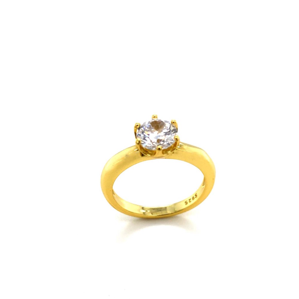 Δαχτυλίδι μονόπετρο από ασήμι 925 επιχρυσωμένο με λευκή πέτρα ζιργκόν.