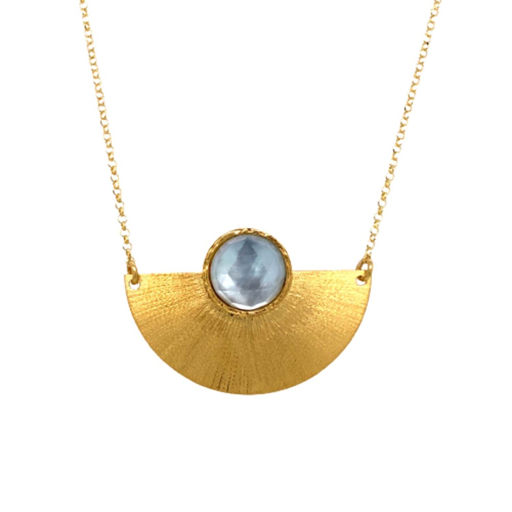 Γυναικείο κολιέ χειροποίητο από επιχρυσωμένο ασήμι 925, σχέδιο βεντάλια με εντυπωσιακή πέτρα.
