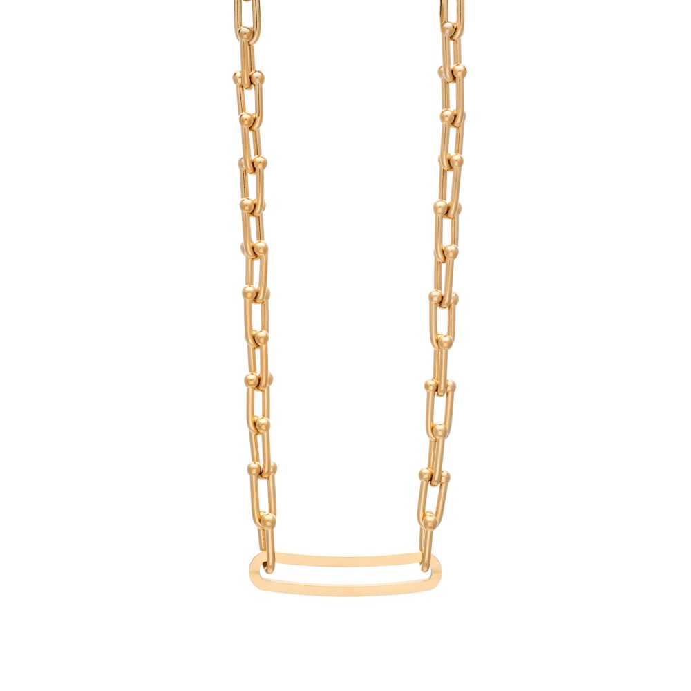 Κολιέ από ανοξείδωτο ατσάλι χρώματος χρυσό αλυσίδα χοντρή με σχέδιο ορθογώνιο μεγάλο.