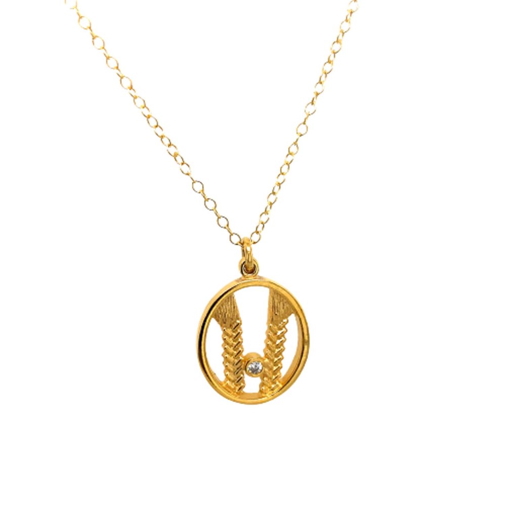 Γυναικείο κολιέ χειροποίητο της εταιρίας Vot από επιχρυσωμένο ασήμι 925, οβάλ στοιχείο με λευκή πέτρα ζιργκόν.
