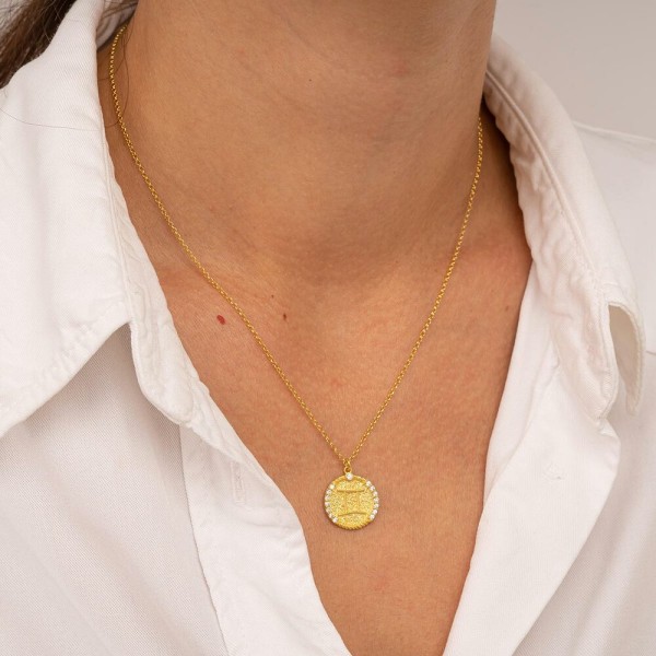 Κολιέ με το ζώδιο του Διδύμου Excite Fashion Jewellery σε ανάγλυφο μοτίφ με λευκά ζιργκόν από επιχρυσωμένο ασήμι 925.