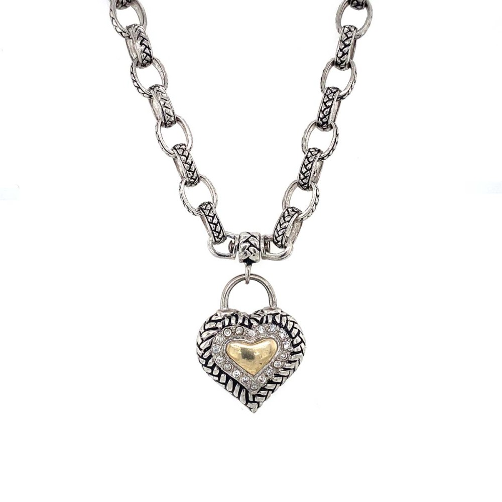 Μενταγιόν από ασήμι 925 χοντρή αλυσίδα κρεμαστό μοτίφ καρδιά με λευκά ζιργκόν.