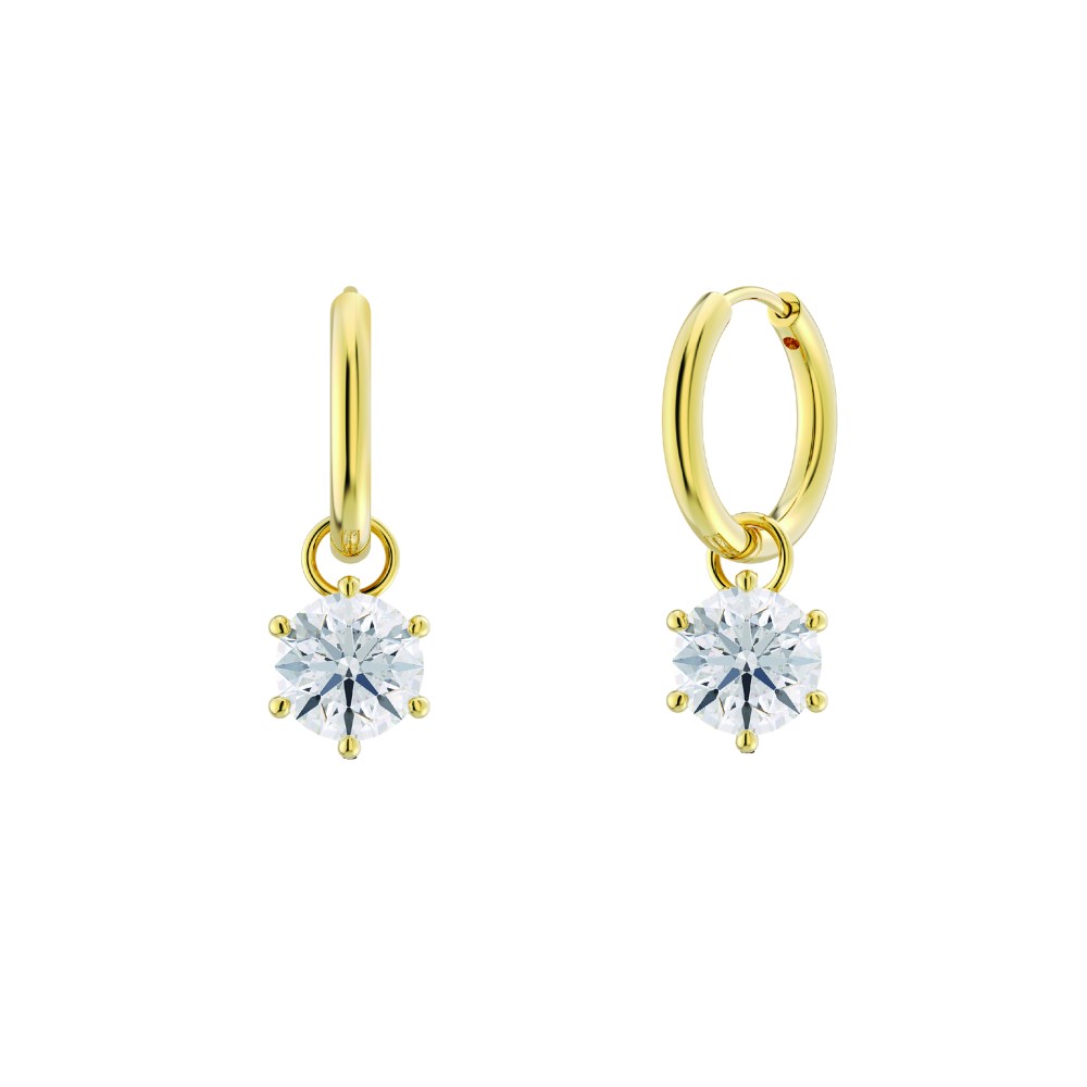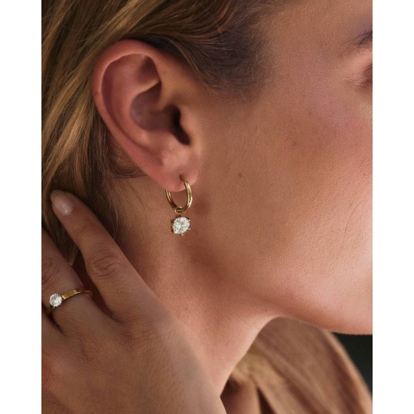 Αναβαθμίστε το στυλ σας με το Crown Hoops με μια λεπτή διαφανή πέτρα που κρέμεται από το δαχτυλίδι.  Η αφαιρούμενη πέτρα κρέμασης προσφέρει ευελιξία για να φορεθεί με διάφορους τρόπους. Οι κρίκοι κορώνας, που φαίνονται εδώ σε γυαλιστερό επιχρυσωμένο 14Κ.