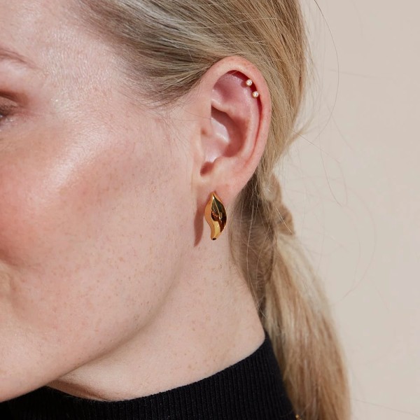 Το Dune είναι ένα κομψό σκουλαρίκι τόσο για καθημερινές όσο για εορταστικές εκδηλώσεις. Τα σκουλαρίκια τα βλέπουμε εδώ με γυαλιστερό επιχρύσωμα 14Κ και δείχνουν υπέροχα επίσης όταν συνδυάζονται με το κολιέ.