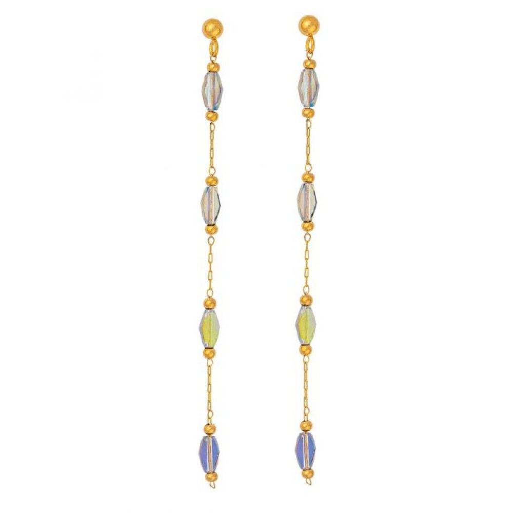 Χειροποίητα σκουλαρίκα, μακριά, επίχρυσα, από ανοξείδωτο ατσάλι (δεν μαυρίζει), με multi οβάλ κρυσταλλάκια, της Excite Fashion Jewellery. Είναι υποαλλεργικά . Συνοδεύονται από συσκευασία δώρου! Τέλεια ισορροπία ποιότητας και τιμής, ακολουθώντας τις τελευταίες τάσεις της μόδας και εξυπηρετώντας τη θηλυκότητα σε κάθε λεπτομέρεια