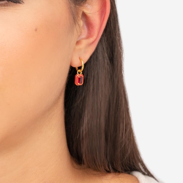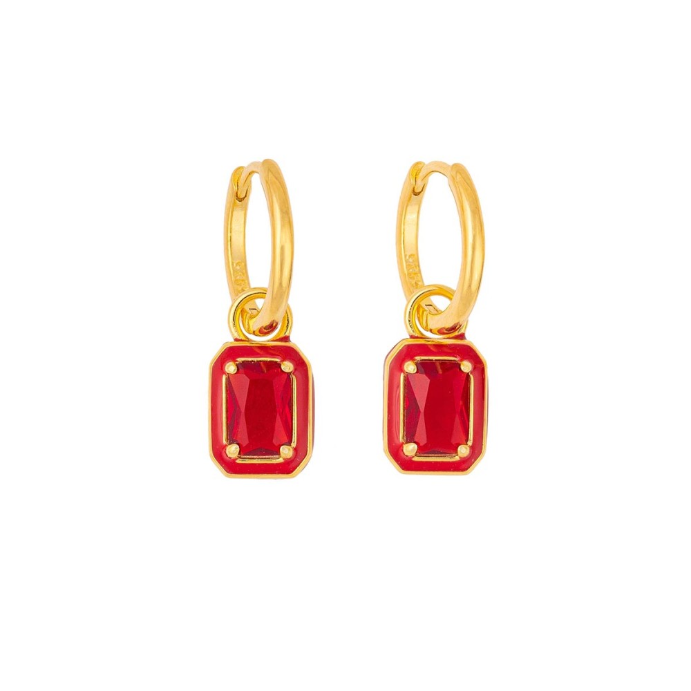 Κρίκοι επιχρυσωμένο ασήμι 925, με κρεμαστό κόκκινο ζιργκόν, και κόκκινο σμάλτο, της Excite Fashion Jewellery.