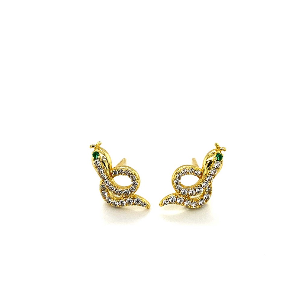 Σκουλαρίκι καρφωτό από ασήμι 925 επιχρυσωμένο, σχέδιο φίδι με ζιργκόν.