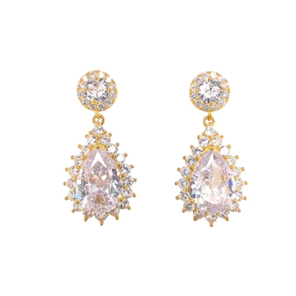 Εντυπωσιακά κρεμαστά σκουλαρίκια από επιχρυσωμένο ασήμι 925 με πέτρες ζιργκόν.