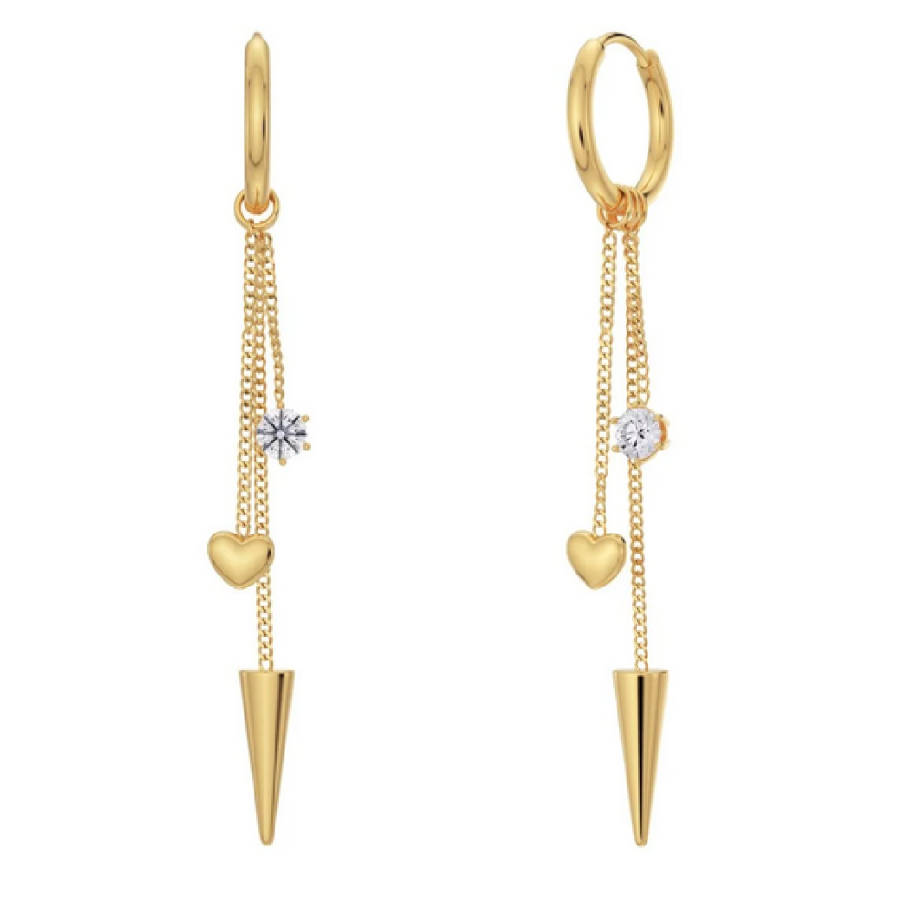 Κωδικός: 127223Ανακαλύψτε το κομψό Peak Hoops Multi Heart, με τρεις αλυσίδες στολισμένες με ένα πριτσίνι, μια γεμάτη καρδιά και μια διάφανη πέτρα που κρέμεται από τον κρίκο. Ιδανικό για καθημερινή χρήση, μπορείτε να συνδυάσετε τις αλυσίδες όπως θέλετε καθώς αποσπώνται από το κρίκο. Σε γυαλιστερό επιχρυσωμένο 14Κ.