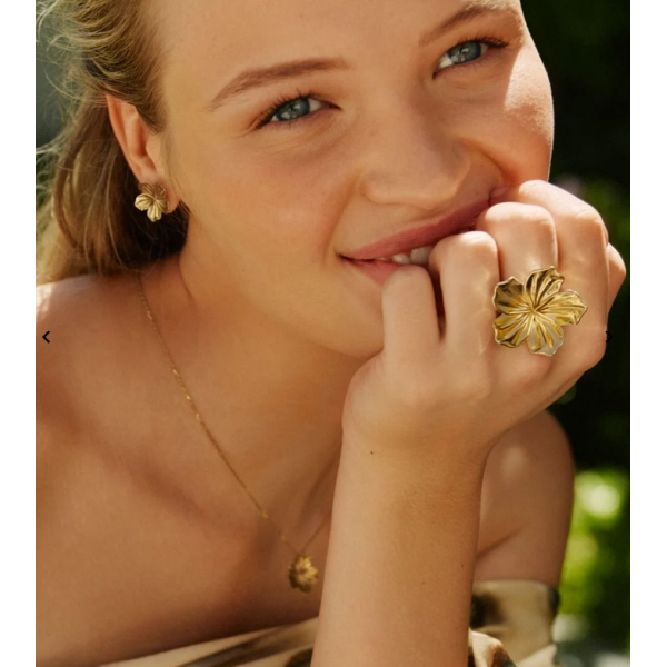 Κωδικός: 129851Η σειρά Jasmine είναι εμπνευσμένη από την ομορφιά του λουλουδιού γιασεμιού σε πλήρη άνθιση. Αυτό το λουλούδι, συμβολίζει τόσο την αγάπη όσο και την κομψότητα. Παρουσιάζεται εδώ το Jasmine Ring L Gold, διακοσμημένο με ένα μεγαλύτερο λουλούδι 14K που φαίνεται φανταστικό στο χέρι. Ιδανικό για να ταιριάζει με τα μεγαλύτερα σκουλαρίκια, το βραχιόλι ή το κολιέ μας από την ίδια γραμμή.