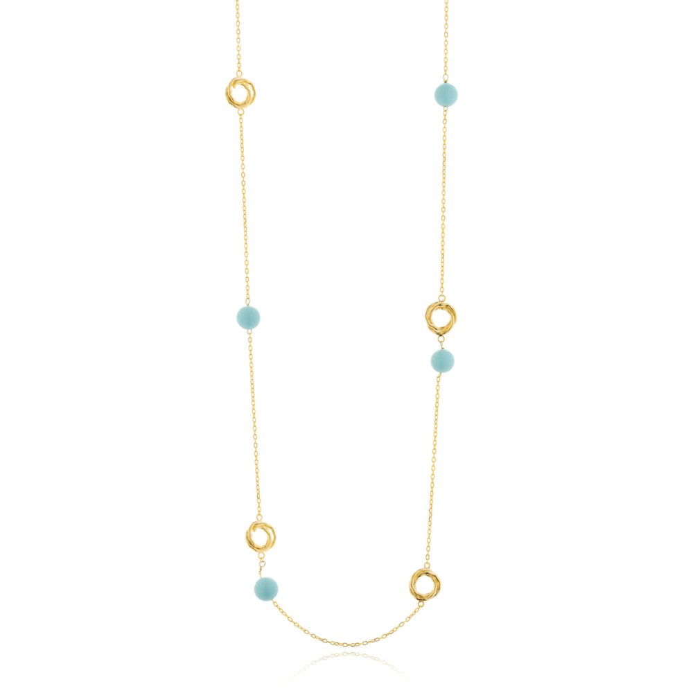 Μακρύ επιχρυσωμένο κολιέ δεμένο με τυρκουάζ πέτρες της εταιρείας JOOLS.