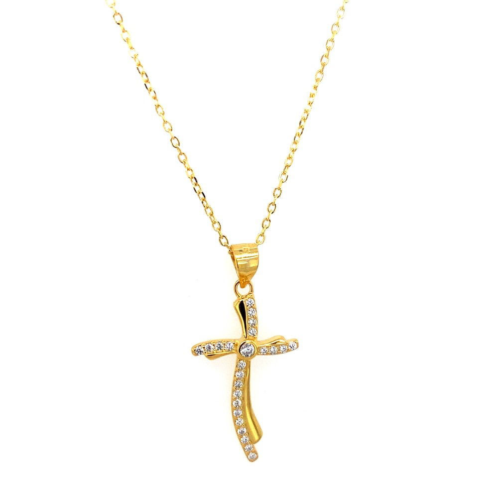 Ασημένιος επιχρυσωμένος σταυρός με πέτρες ζιργκόν της εταιρείας JOOLS.
