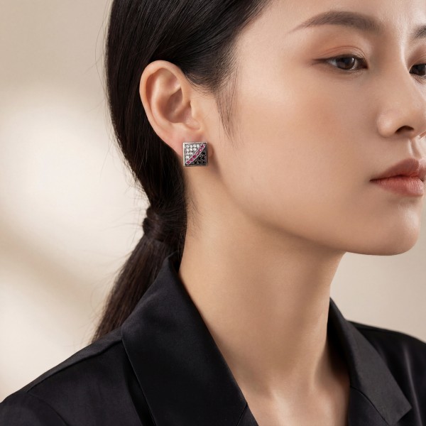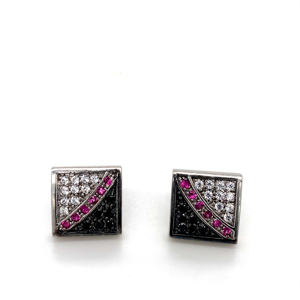 Ασημένιο σκουλαρίκι με ζιργκόν,σε μοντέρνο σχέδιο.