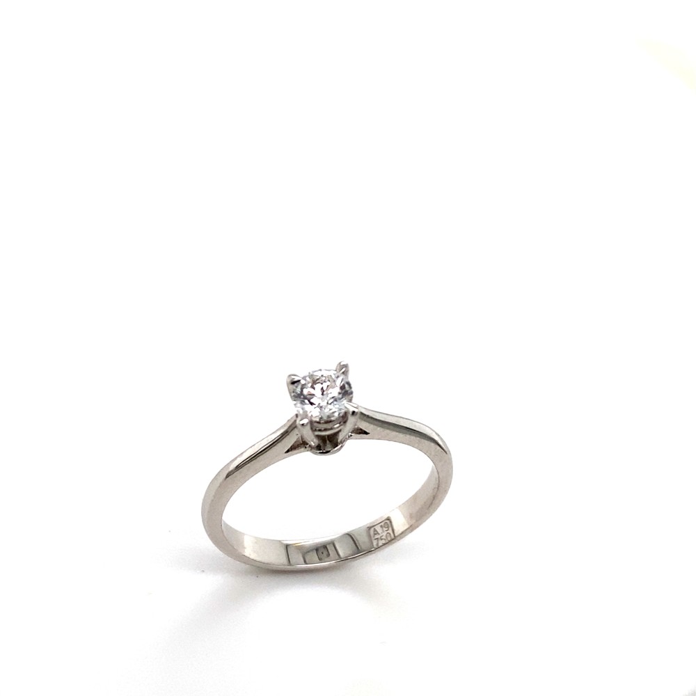 Kομψό μονόπετρο δαχτυλίδι από χρυσό δαχτυλίδι 18 καρατίων, σχεδιασμένο για να αναδεικνύει τη λάμψη της κεντρικής πέτρας. Η minimal γραμμή του το καθιστά ιδανικό τόσο για πρόταση γάμου όσο και για καθημερινή πολυτέλεια.