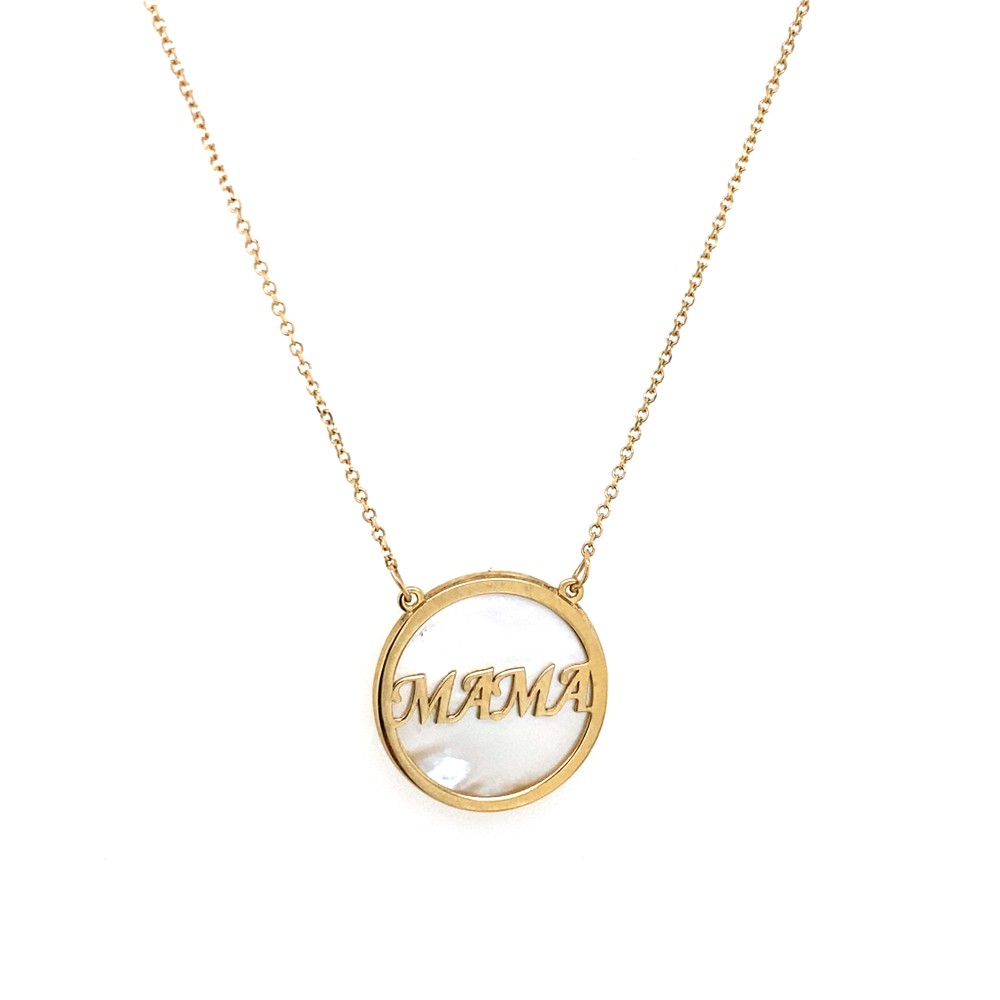 Κομψό μενταγιόν από χρυσό 14Κ με φίλντισι, σχεδιασμένο σε στρογγυλή φόρμα που αναδεικνύει τη φυσική λάμψη του υλικού. Στο κέντρο δεσπόζει η επιγραφή «MAMA», δημιουργώντας ένα ιδιαίτερο και συναισθηματικό κόσμημα.