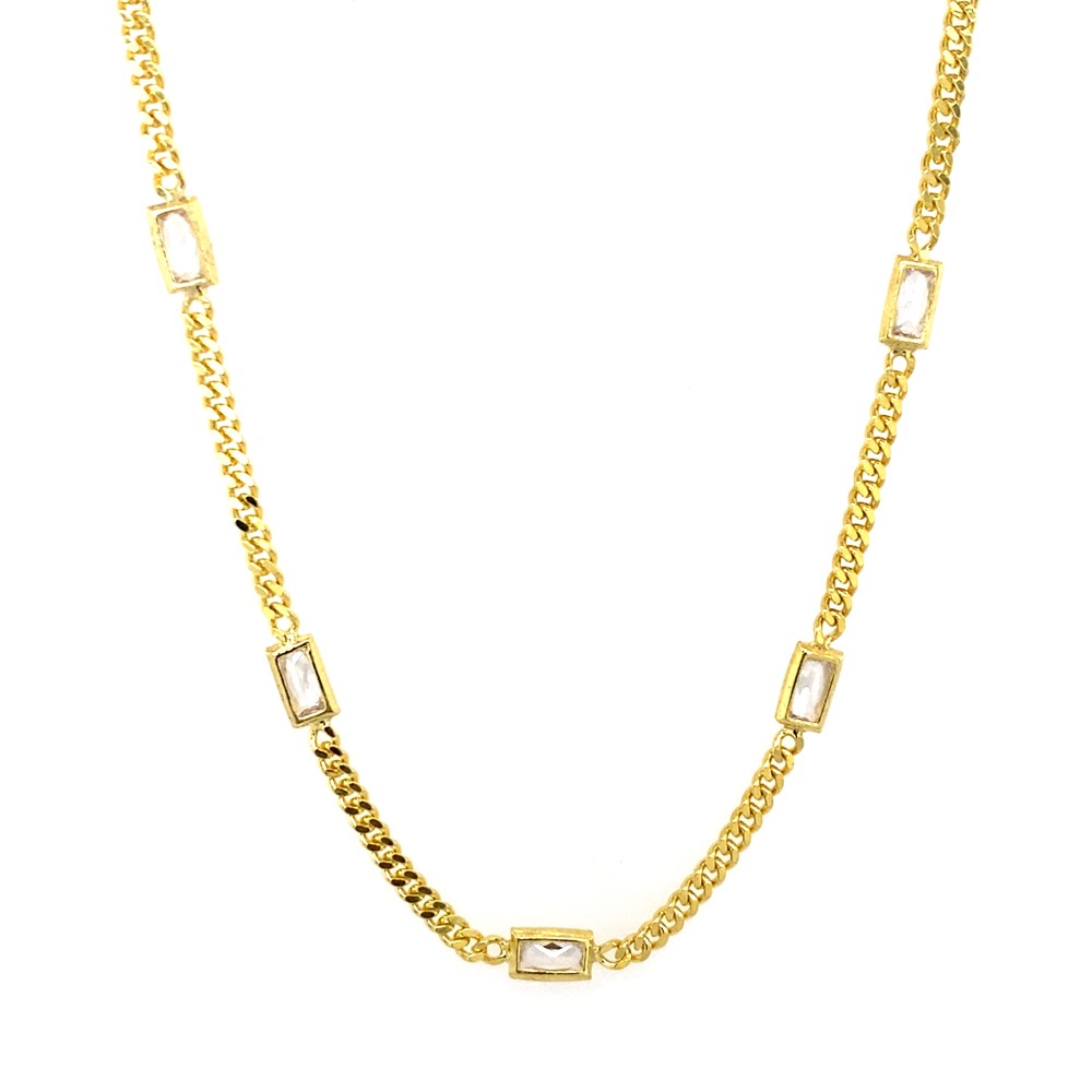 Ασημένια επιχρυσωμένη αλυσίδα με καρφωμένες πέτρες ζιργκόν σε σχήμα ορθογώνιο κατ΄΄α μήκος της.