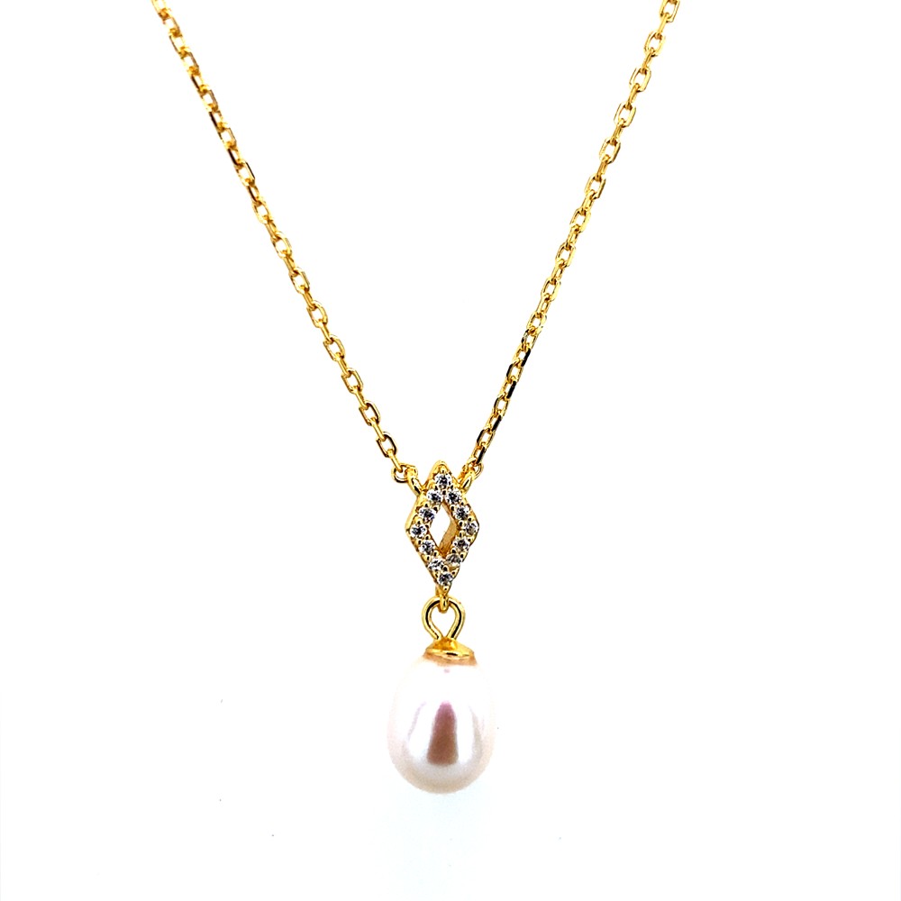Μενταγιόν γυναικείο από ασήμι 925 επιχρυσωμένο με κρεμαστό μαργαριτάρι.