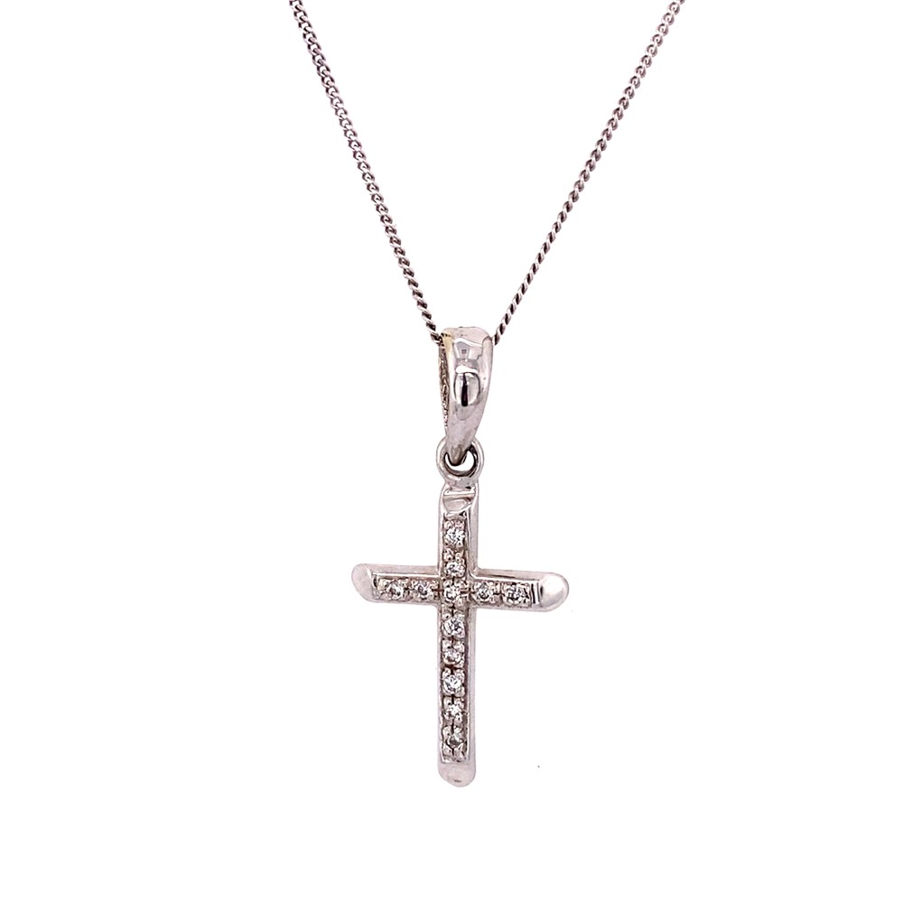 Σταυρός γυναικείος από λευκό χρυσό 18Κ σχέδιο με μικρά διακριτικά μπριγιάν 0,09ct.