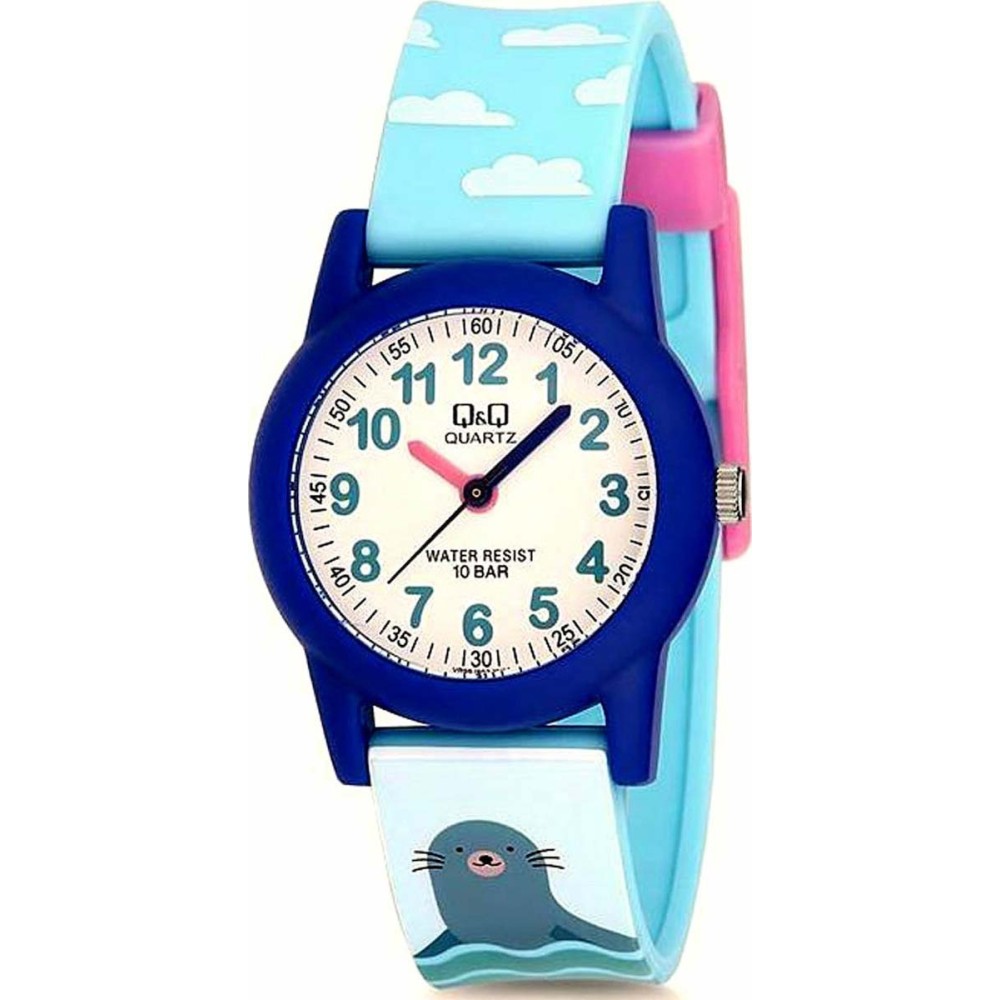 Παιδικό ρολόι Q&Q για κορίτσι με σχέδια και λουράκι από καουτσούκ. Αδιαβροχοποίηση 10 Bar