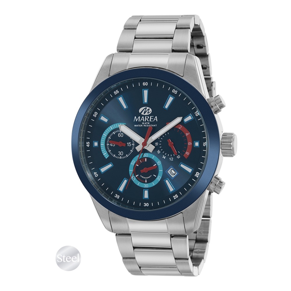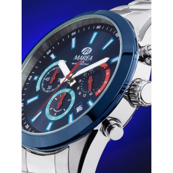 Ανδρικό ρολόι Marea με ασημί ατσάλινο μπρασελέ. μπλε καντράν.