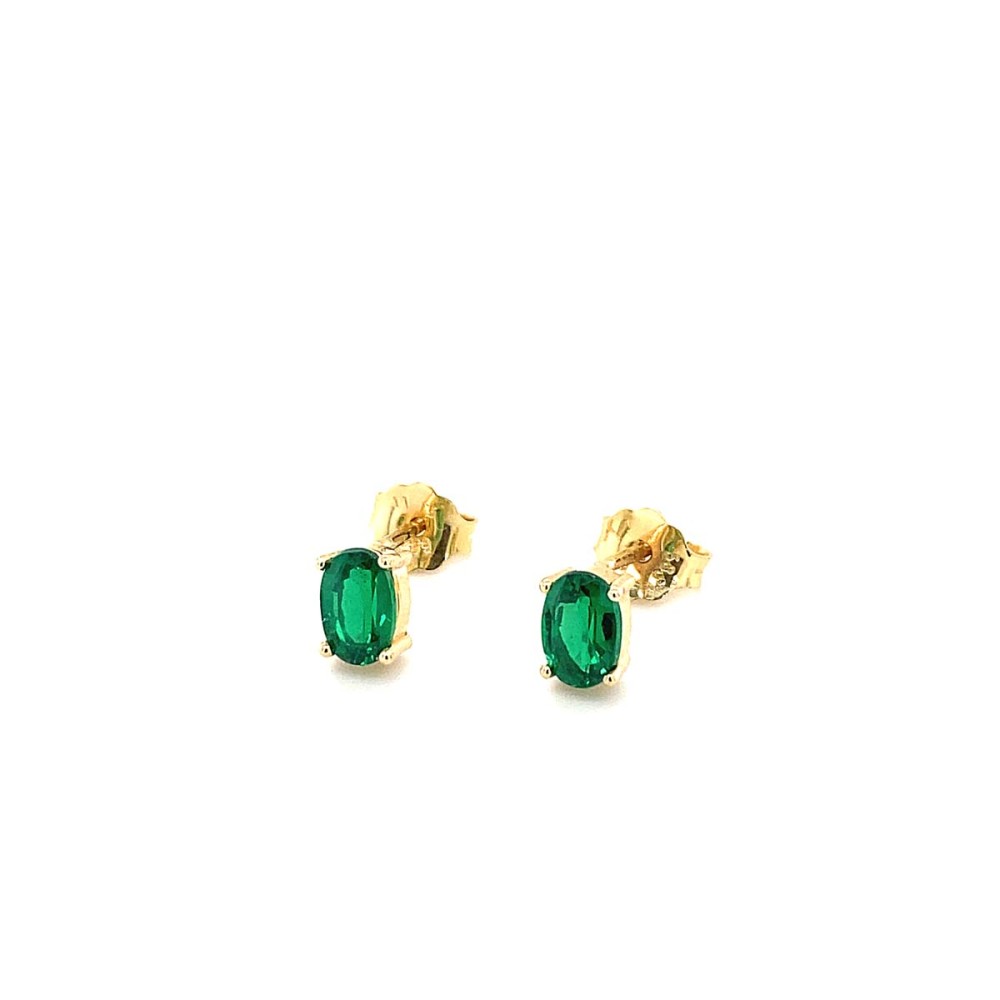 Σκουλαρίκια καρφωτά από κίτρινο χρυσό 14Κ με πέτρα σμαράγδι.