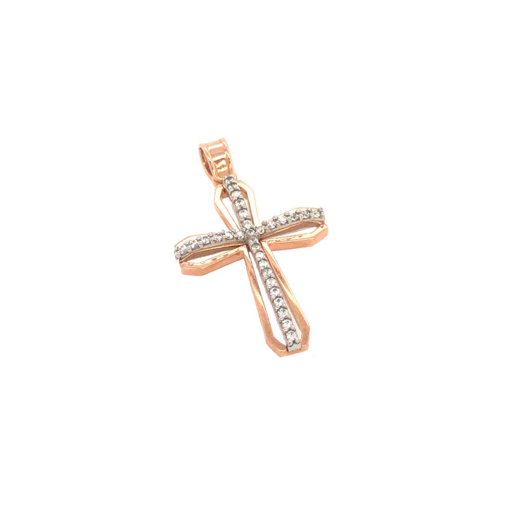 Σταυρός από χρυσό 14 καρατίων κεντημένος με λευκά ζιργκόν σε σχήμα Σταυρού στο κέντρο του.