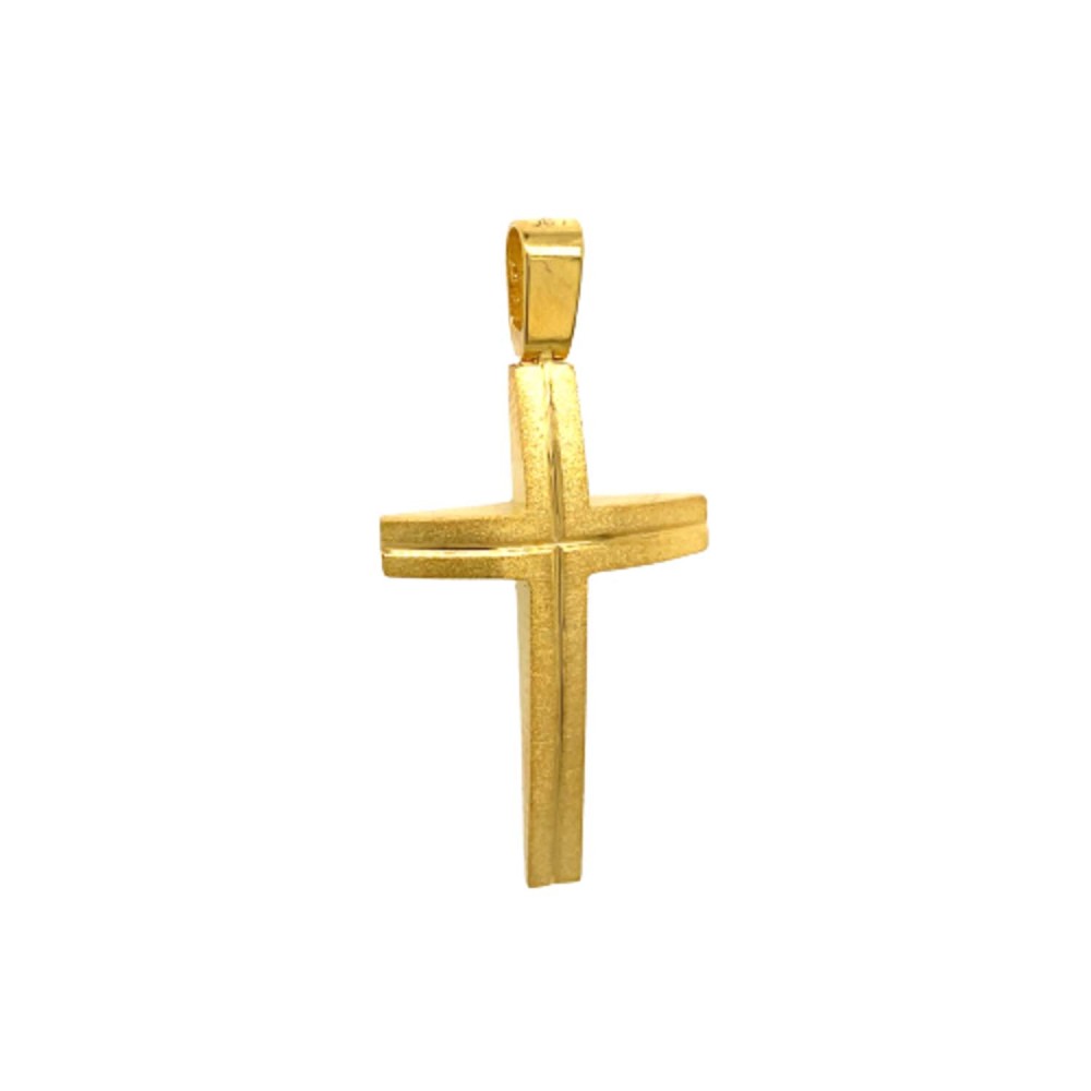 Σταυρός βάπτισης για αγόρι από χρυσό 14Κ, σχέδιο πομπέ σε σατινέ επιφάνεια.