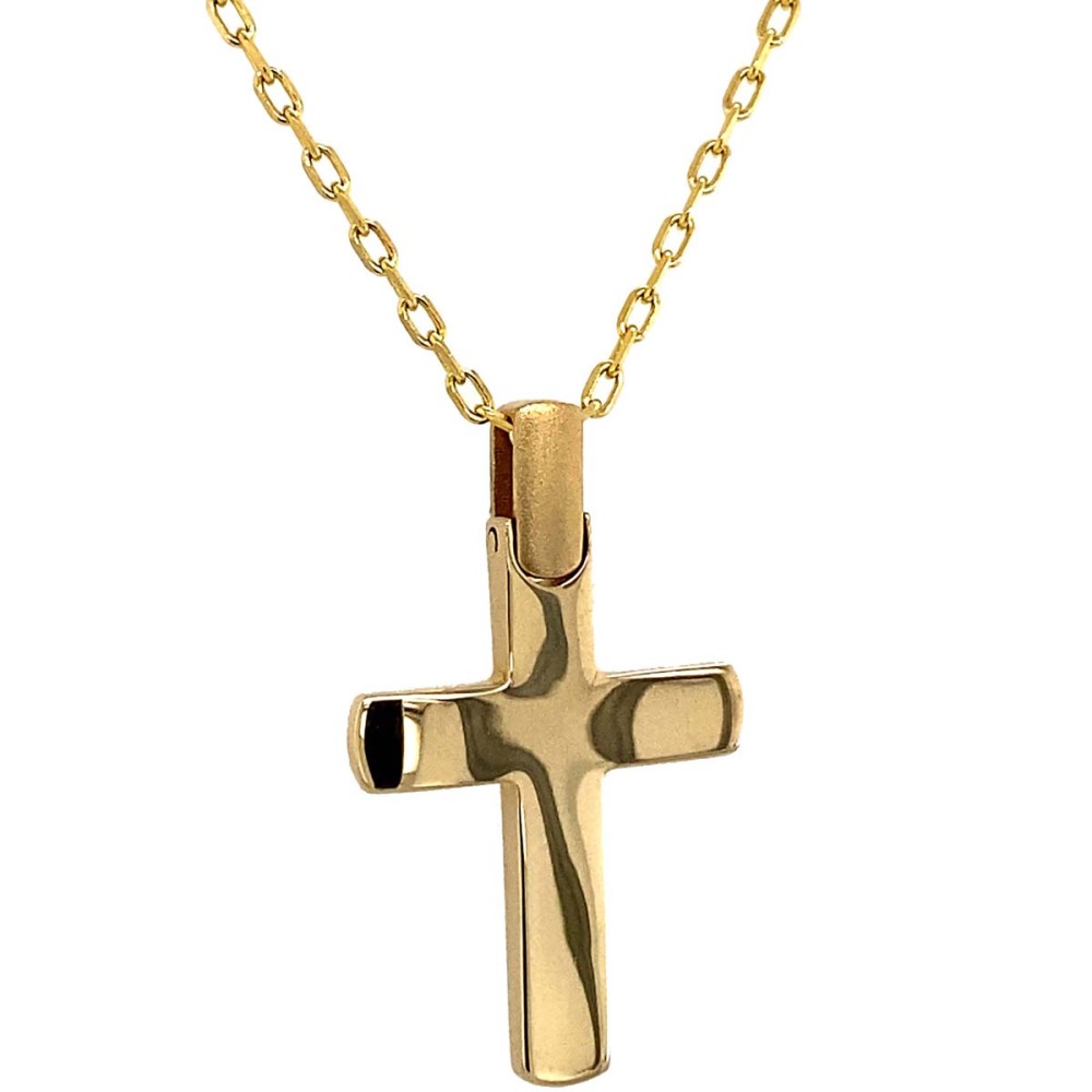 Σταυρός βάπτισης για αγόρι από χρυσό 14Κ με λουστρέ επιφάνεια.