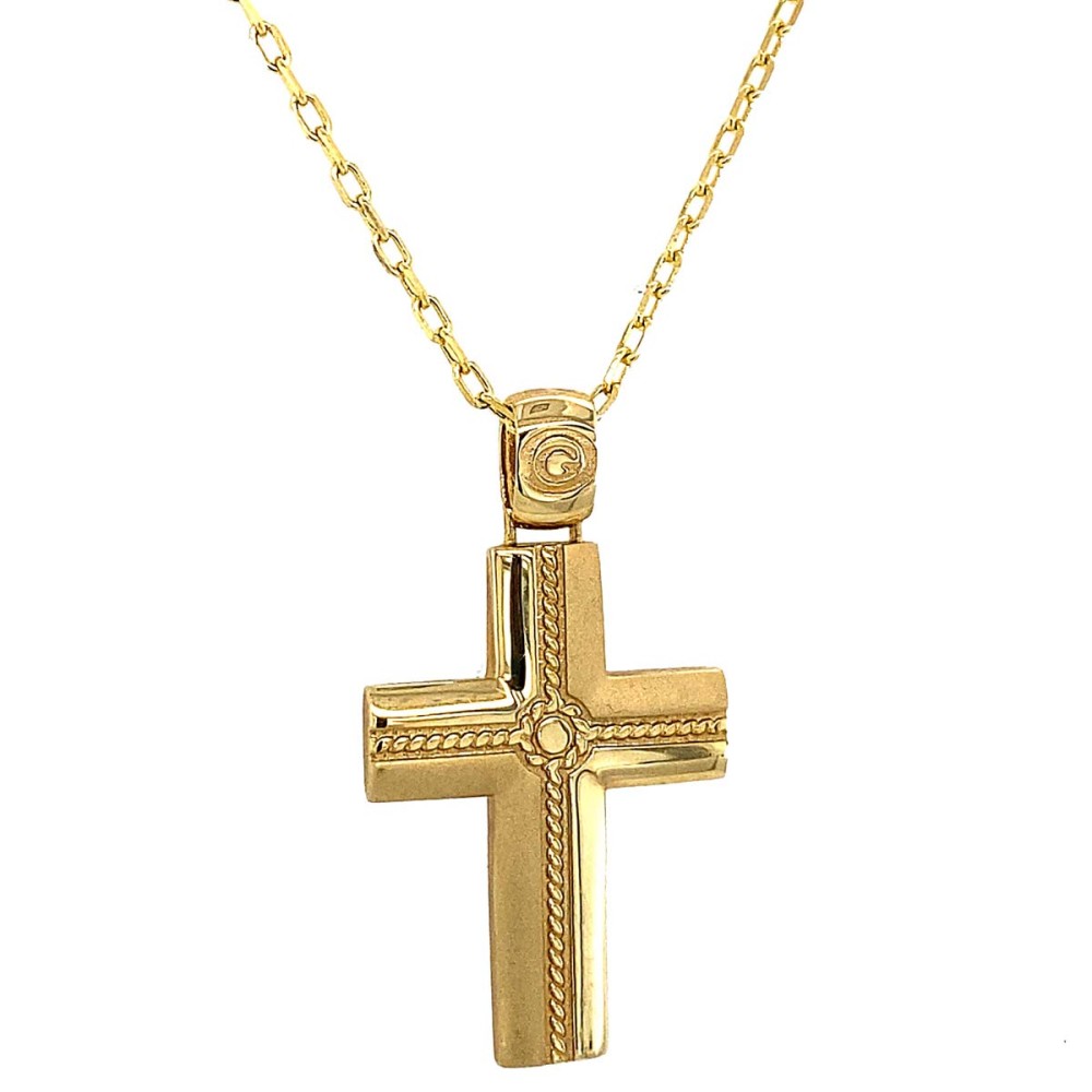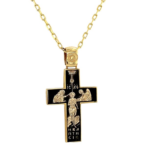 Σταυρός βάπτισης για κορίτσι από χρυσό 14Κ διπλής όψεως με Την Εικόνα Της Βάπτισης στο πίσω μέρος.