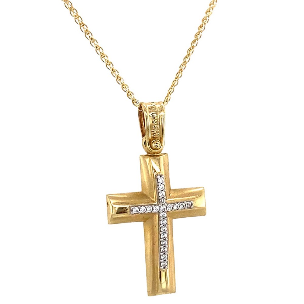 Σταυρός βάπτισης για κορίτσι από χρυσό 14Κ με λευκά ζιργκόν.
