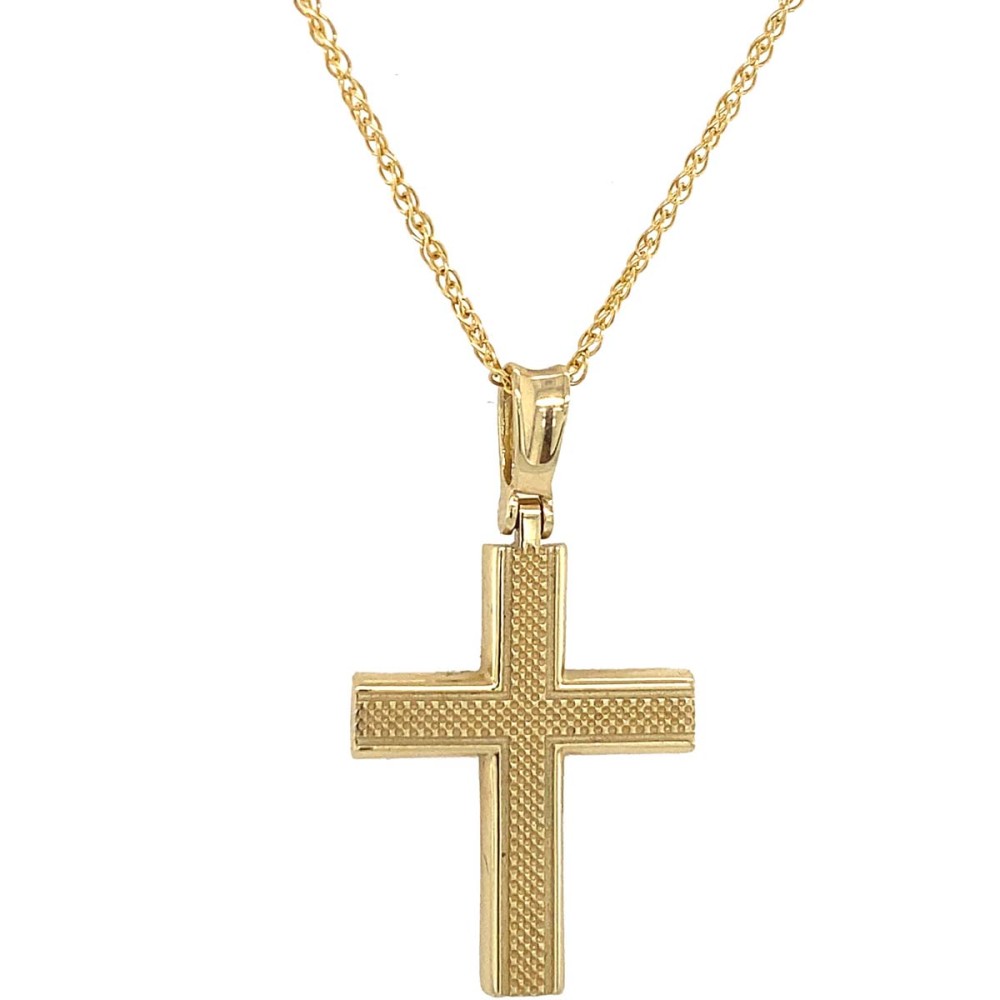 Σταυρός βάπτισης για κορίτσι από χρυσό 14Κ με επιφάνεια λουστρέ.