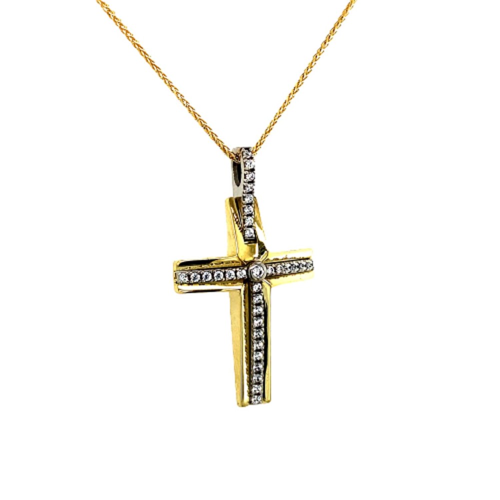 Φύλο: Γυναικείο, Μέταλλο: Χρυσός 14Κ, Χρώμα: Κίτρινο-Λευκό, Πέτρες: Ζιργκόν, Βάρος: 2,7gr, Διαστάσεις Σταυρού: 2,9cm x 1,6cm