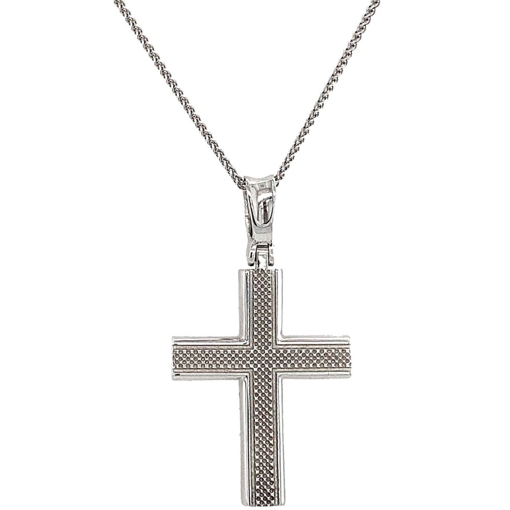 Σταυρός βάπτισης για κορίτσι από λευκό χρυσό 14Κ με επιφάνεια λουστρέ.