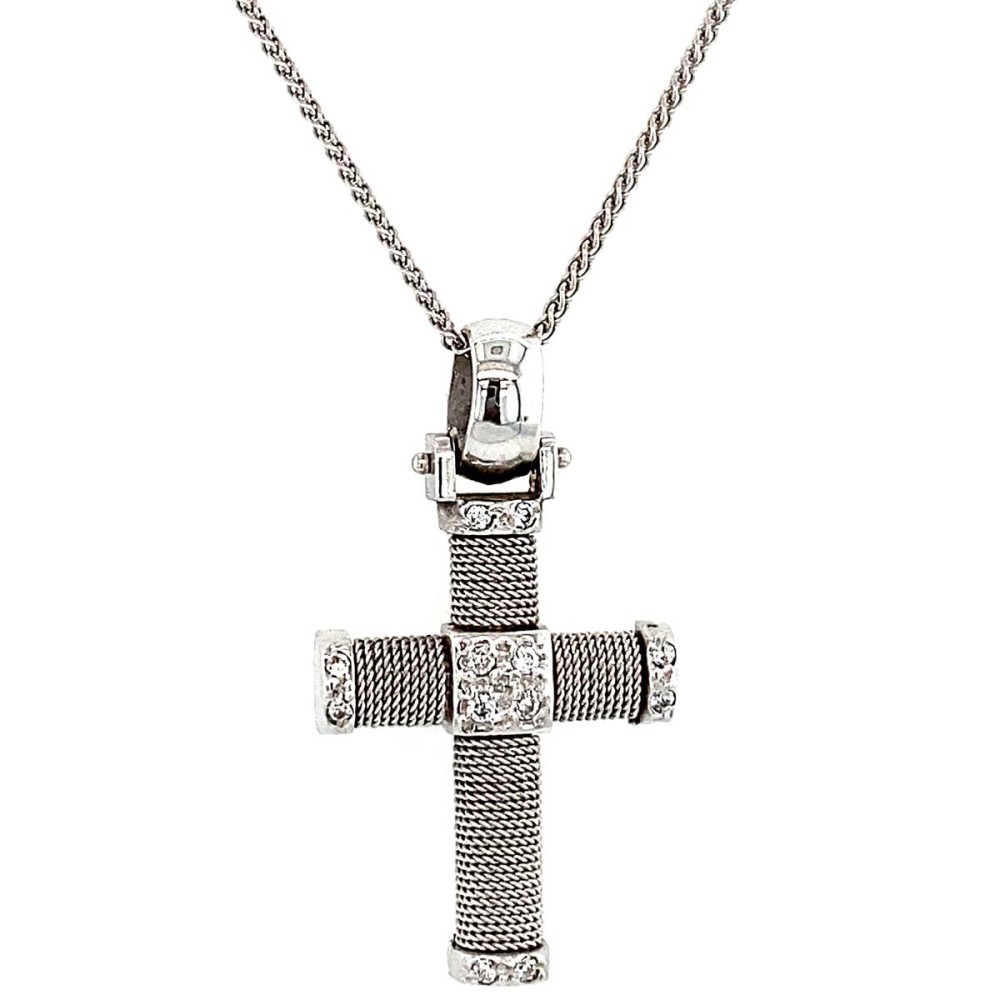Σταυρός βάπτισης για κορίτσι από λευκό χρυσό 14Κ με λευκά ζιργκόν.