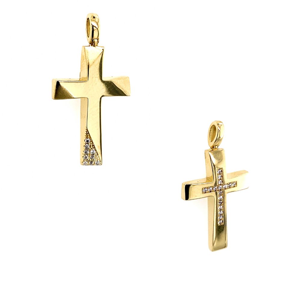 Βαπτιστικός σταυρός για κορίτσι απο κίτρινο χρυσό 14κ με λευκά ζιργκόν, διπλής όψης.
