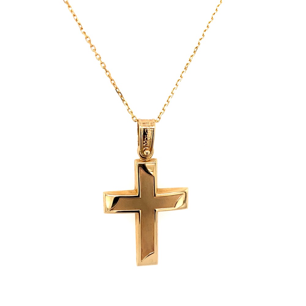 Σταυρός βάπτισης για αγόρι από χρυσό 14Κ με λουστρέ και ματ επιφάνεια.