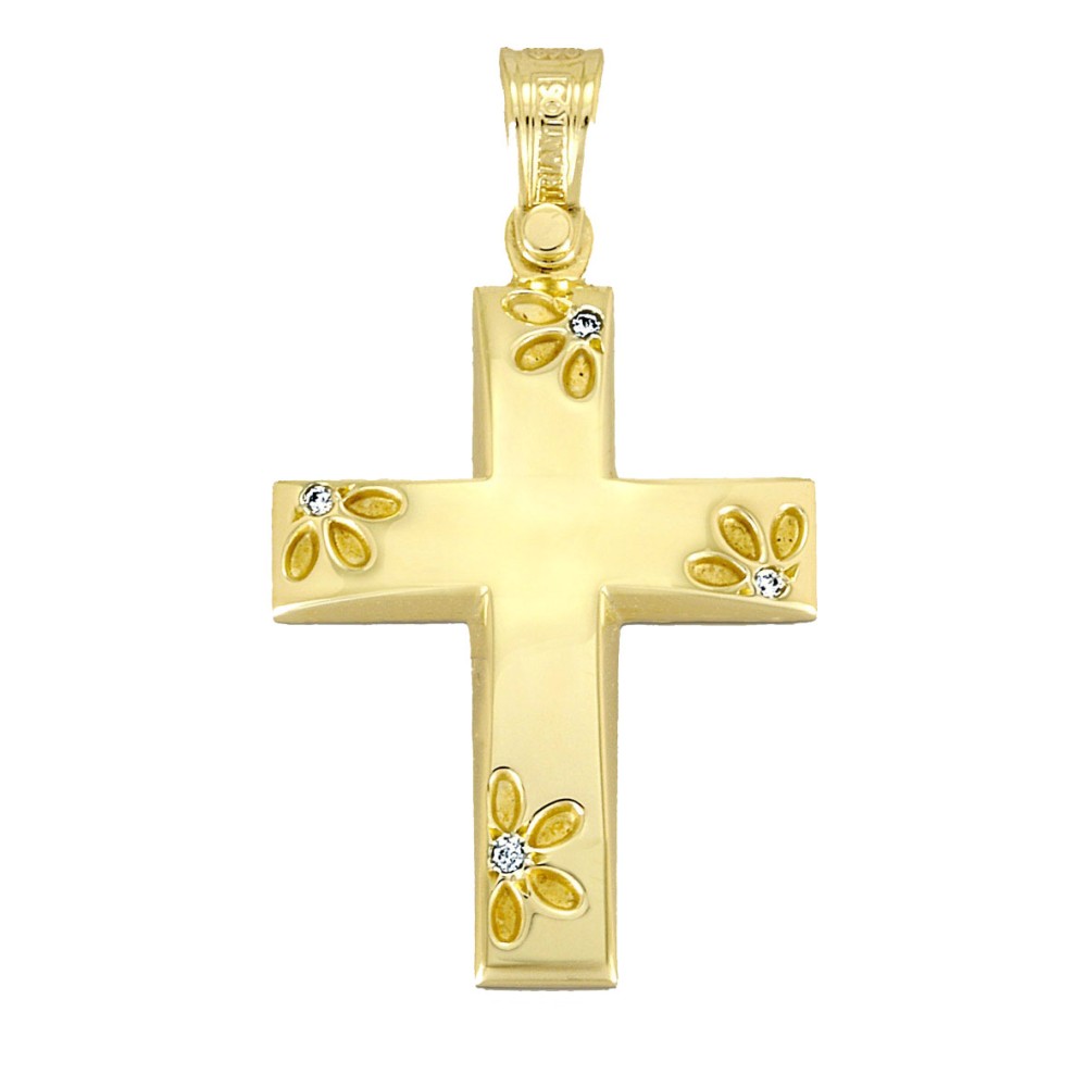Σταυρός Τριάντος από κίτρινο χρυσό 14 καρατίων με λουστρέ επιφάνεια.